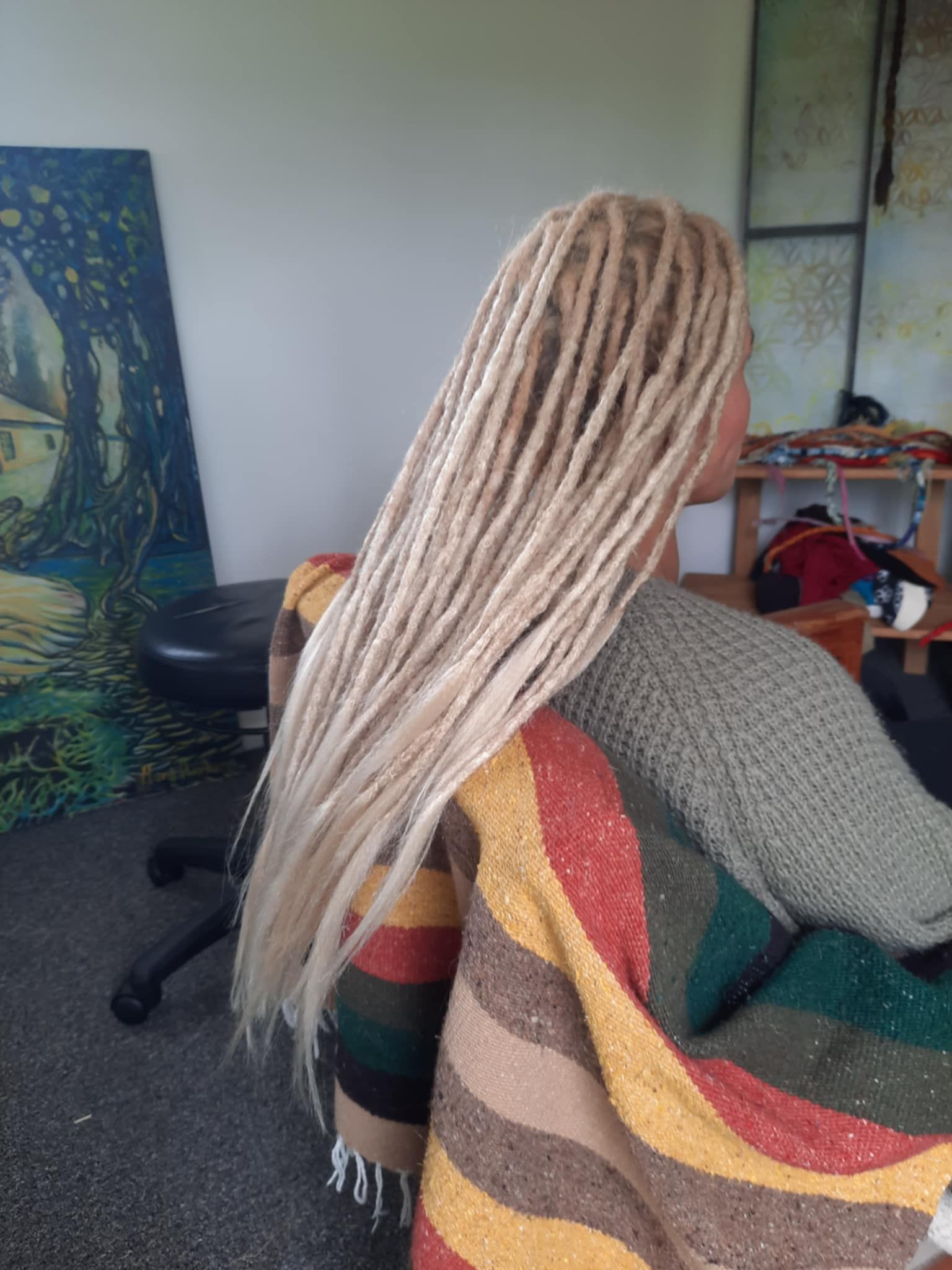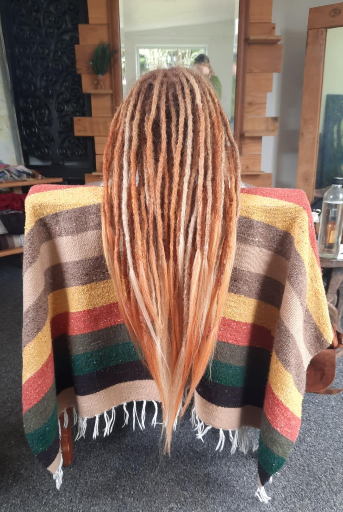 The loose ends or long tails can really vary in length. It creates a nice soft flowing look and can be great for the partial dread lovers so that the dreads integrate with the remaining hair.